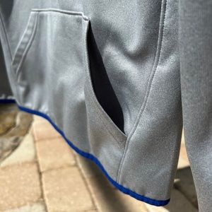 Keep warm in this zip-up pullover with front kangaroo pouch.