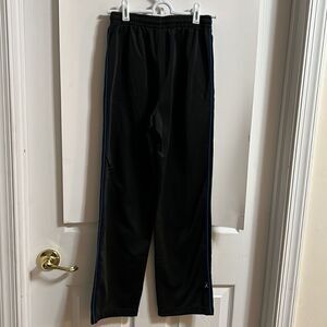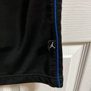 Air Jordan black pants with blue stripes on sides.