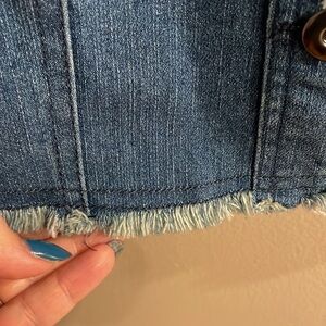 Youth girls stretch denim Vest with red sequins shoulders button front 10/12 MC