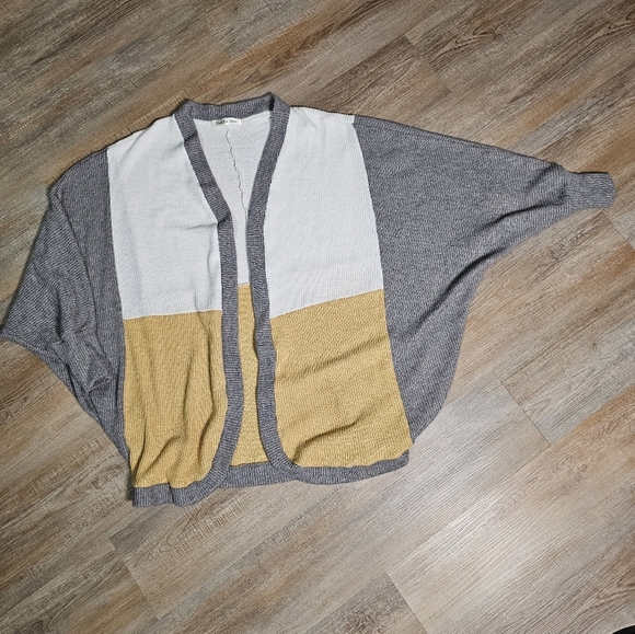 Youth in Revolt Waffle Knit, Color Block, Casual Cardigan Grey, Yellow, White