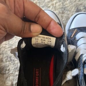 Youth size 12, mix and match blue and black jean Levi shoes, these Levi shoes were manufactured like this, they are like new condition