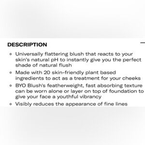 BYO Blush reacts to your skins pH to instantly give you the perfect shade of natural flush. Lightweight and fast absorbing. Use on lips and cheeks! Can be worn on bare skin or layered on foundation. Makeup and skin care combined! Unisex. New! In the box. Giftable.