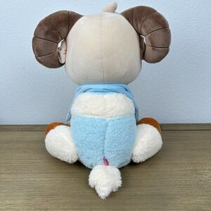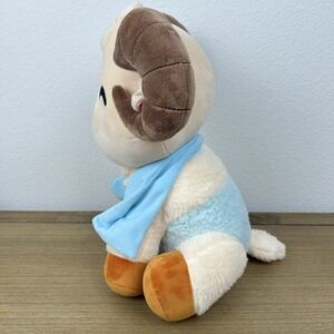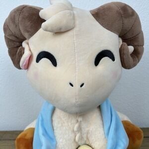 Youtooz Jschlatt Bath Time Ram plushie. 12 inches tall and made of soft PP cotton. It features brown horns, an embroidered face with a pleasant expression. Ram wearing a towel and holding a ducky.