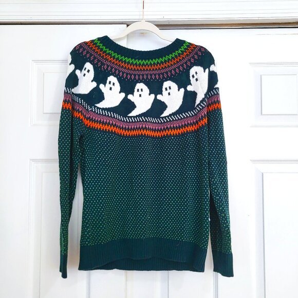 "You've Been Ghosted" Fair Isle Sweater Green Modcloth Size L Halloween