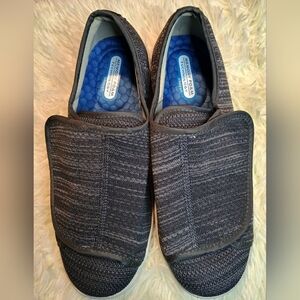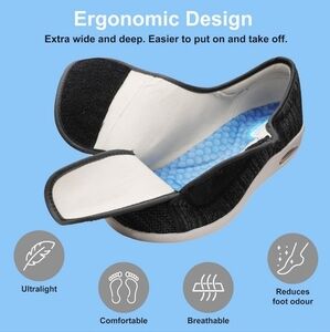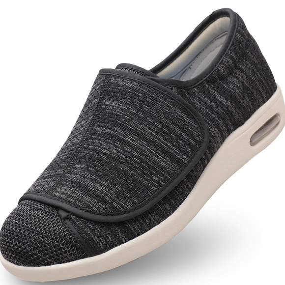 Youyun Diabetic Black and White Slip-On Sneakers/X - Wide Velcro Shoe/Unisex