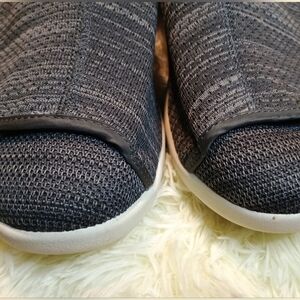 Stylish black slip-on sneakers with a white sole. Comfortable and easy to wear.