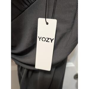 Yozy Dark Gray Wide Leg High Waist Ruched Sleeveless Jumpsuit Size L Pockets