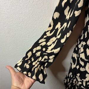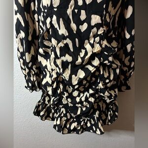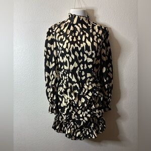 🆕Yozy Long Sleeve Stand Collar Mock Neck Flounce Sleeve Ruched Ruffle Dress L🆕