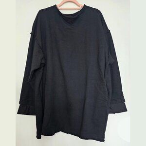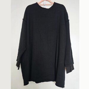 Y’s by Yohji Yamamoto Crew Neck Oversized Sweatshirt with Shirt Cuffs, S, Black