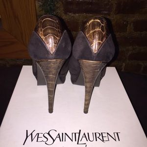 Ysl Tribute Pump Brown Suede with alligator heel