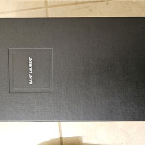 Gentle worn authentic YSL black leather slides, in women size 38. The serial number is shown in the photo. Please view all photos. Comes with original box and bag for both shoes.