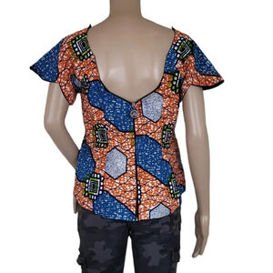 Yuemao Plastic African Abstract Diamond Scales Blue Orange Black Green Blouse