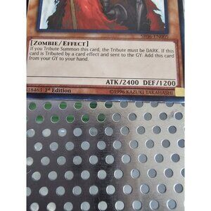 This rare and highly sought-after Yu-Gi-Oh! TCG trading card features the infamous Lich Lord, King of the Underworld. This card is a 1st edition, manufactured in 1996, and is a must-have for any serious collector of the series.