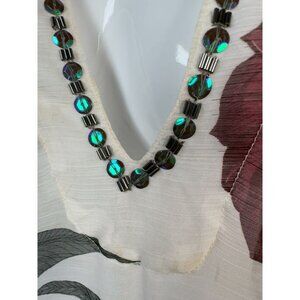 Yuka Beach Floral Embellished Chiffon Tunic Top L White Multicolor Lightweight