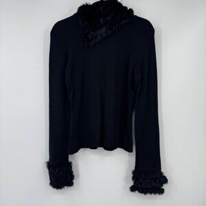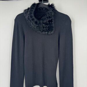 Yuka Black Cowl Neck Sweater Rabbit Fur Trim at Collar Wrist woman’s size Medium