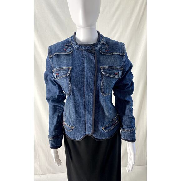 Yuka Jean Jacket in Denim Blue Denim with Dark Piping Size Medium