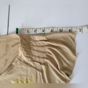 Stylish tan top featuring elegant gold accents. Perfect for a chic and casual look.