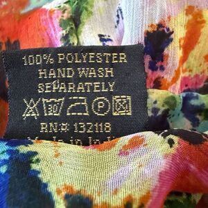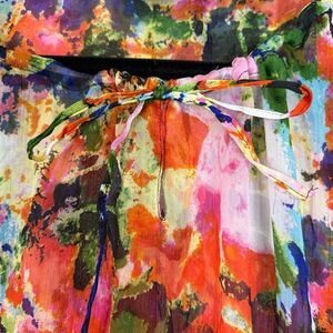 Beautiful, colorful, sheer swim cover, perfect for beach or poolside. Goes with many color swimsuits. The sleeves had drawstrings at one time, but, they have been removed. Otherwise, in excellent condition.