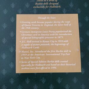 Yuletide Romance Barbie Third in the Series 1996 Mattel 15621 Hallmark SE NRFB. Adult owned from private collection stored in totes with no access to heat or direct sunlight. Never on display or removed from the box, the box has some overall wear, corner crease and small rip by the opening flap (see pics). Beautiful fashion doll for holiday display. Marked used condition and priced to reflect box condition.