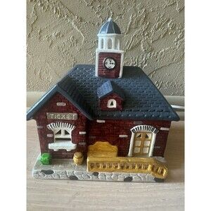 Yuletide Snow Hamlet Merry Town Station Ceramic Christmas Village Lights Up