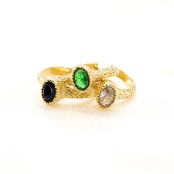▪️Yulz Ring -▪️Colors Available: - Black -Green -Clear ▪️Size: 7 ▪️Stainless Steel / Gold Plated / CZ