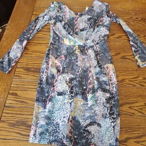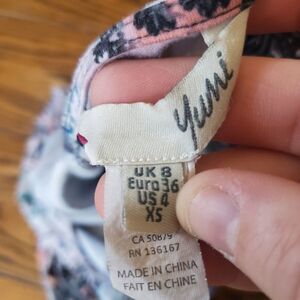Yumi Colorful Fun Multicolor Tree Print Dress sz XS/4 in good used condition with minimal wear.