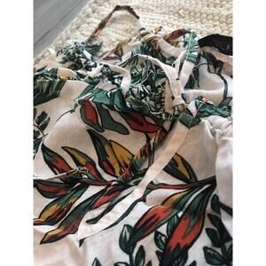 Yumi Day White Green Yellow Tropical Leaves Sun Midi Dress Cover Up Womens Sz L