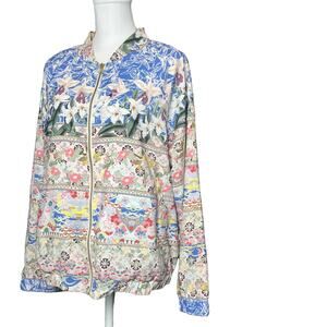 Yumi Floral Bomber Jacket Size 12 Lightweight Zip Up boho eclectic coastal