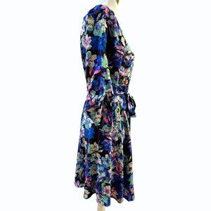 The Yumi Kim Silk Wrap Dress is a stunning blue floral garment for women. With its 3/4 sleeves and cottagecore garden design, this XS dress brings a touch of elegance to any event.