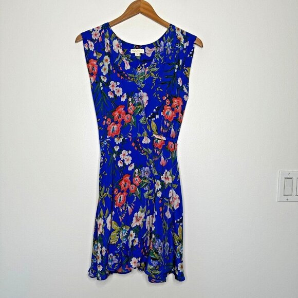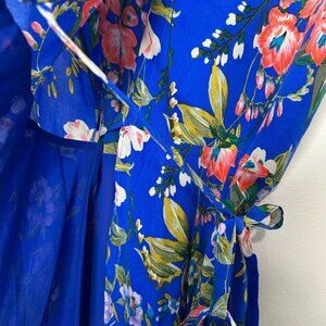 Yumi Kim Amalfi Coast Soho Mixer Silk Mini Wrap Dress Size XS Blue Floral Boho