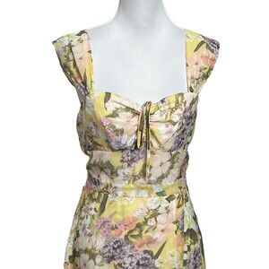 Yumi Kim Ariana Floral Dress Women’s Size Small Yellow Midi Ruched Lined