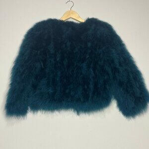 Yumi Kim Away We Go Jacket Womens Size XS Fur Feather Cropped Event Holiday Ink