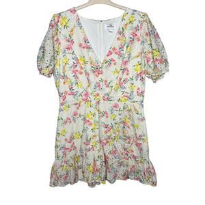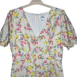 Yumi Kim Be the One Dress. White eyelet with colorful floral all over print. Back zip closure. In great condition. Size 16