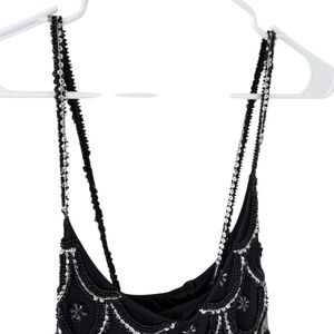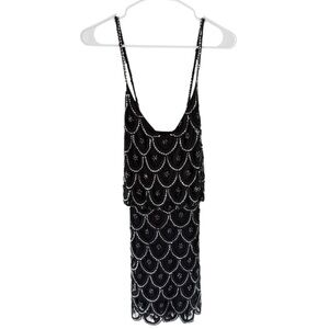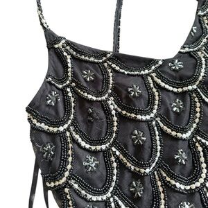 Stylish black dress with elegant beadwork. Ideal for special events.