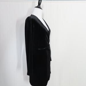 Yumi Kim Black Velvet Surplice Neckline Wrap Skirt Mini Dress Long Sleeves Size Small