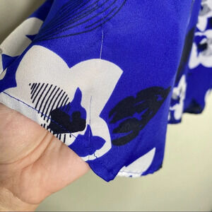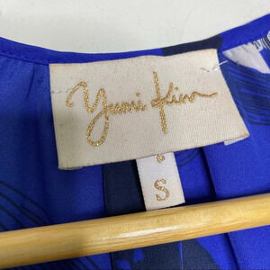 Yumi Kim Blue Floral Joey Tie Neck Peasant Blouse Size Small