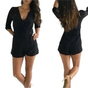 Yumi Kim Carly Romper Women's XS Black 100% Silk NWT Pockets