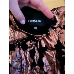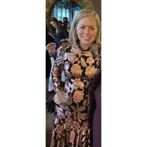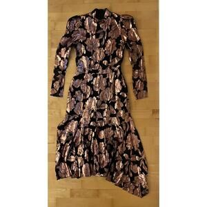 Yumi Kim Connie Midi Dress Brocade Rose Black Metallic Floral Long Sleeves XS