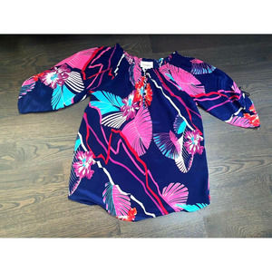 Yumi Kim Exotic Print Silk Tunic Top Off-The Shoulder ~S