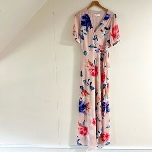 Yumi Kim J'Adore Floral Maxi Wrap Dress in Pink sz S