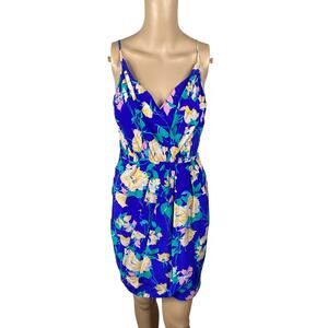 Yumi Kim Jayne Blue Floral Silk Faux Wrap Dress SZ XS