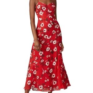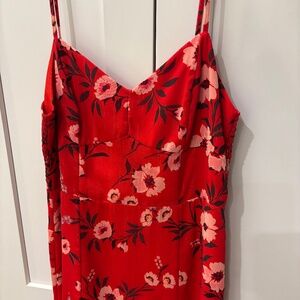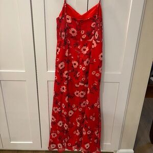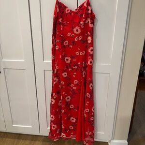 Yumi Kim last dance maxi dress in a red floral pattern with a stunning slit. So flattering! Called a maxi dress but hits more tea length/ high ankle. In perfect condition!