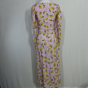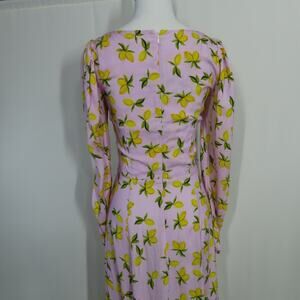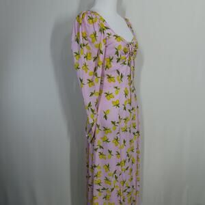 Yumi Kim Lavender Lemon Print Sweetheart Neckline Long Sleeve Midi Dress Size Small