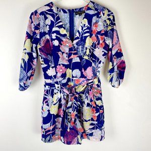 Yumi Kim Liz Romper Floral V-Neck Belted Tropical Vaca Blue Pink Yellow Size XS