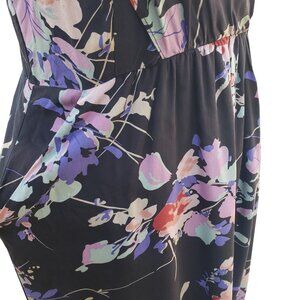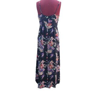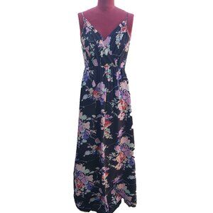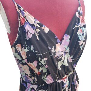 Yumi Kim Maxi Dress Black Silk Floral V Neck Sleeveless Pockets Medium