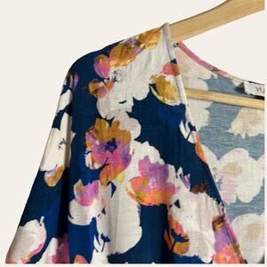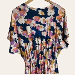 Yumi Kim Navy Blue Floral Print V-Neck Dolman Short Sleeve Romper Size XS