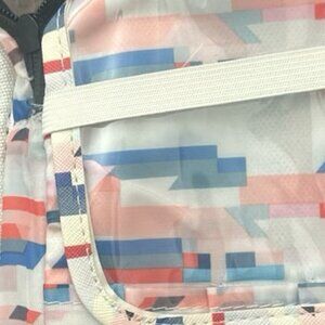 Like new condition. Dual zippered compartments. Plenty of space. Navy color with pops of color.