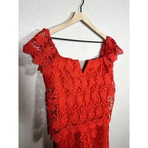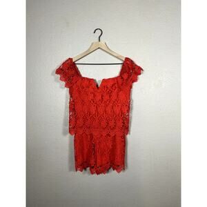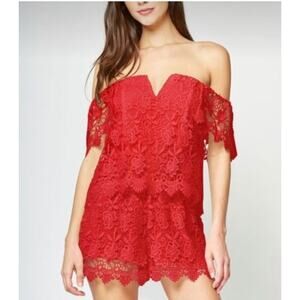 Yumi Kim Red Lace Off Shoulder Boho Short Romper Size Medium