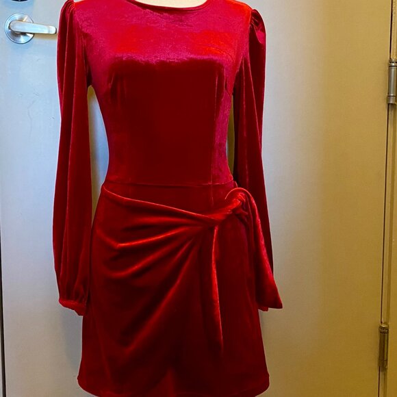 Yumi Kim Red Velvet Dress with Wrap Skirt Size XS