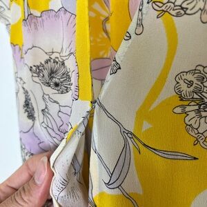 Yumi Kim Silk Wrap Midi Dress S Yellow Floral Wedding Guest Vacation Resort Work